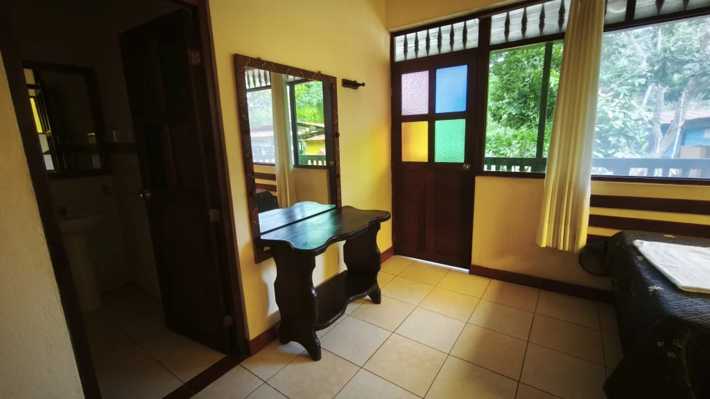 Unser Superior Zimmer ist schlicht und gemütlich gehalten – perfekt, um zur Ruhe zu kommen. Von der kleinen Terrasse blickst du direkt in den Garten, wo sich der Pool befindet, und dahinter fließt der Fluss vorbei. Natürliche Materialien schaffen eine entspannte Atmosphäre mitten in der Natur.